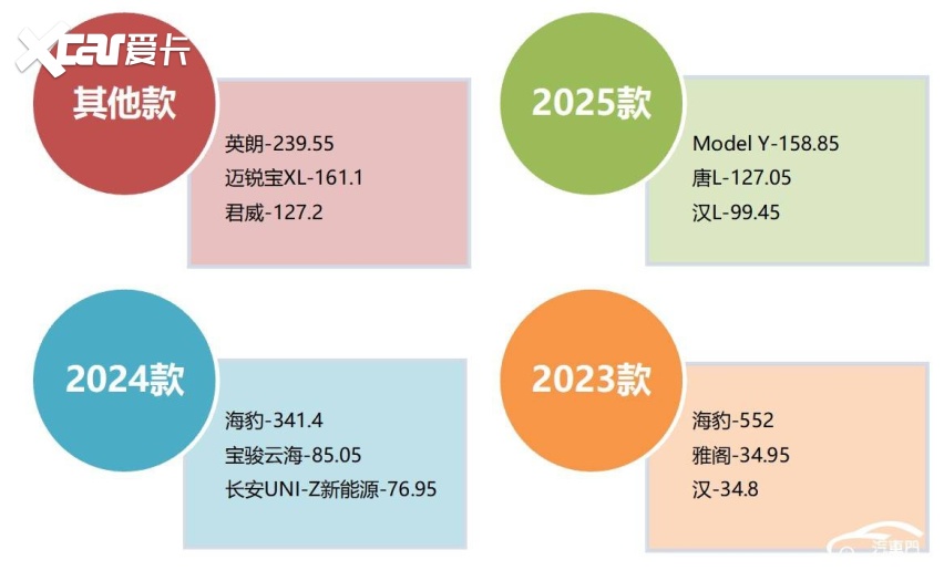 五、从车型年款来看,六年以上的老车、2025款、2024款是主要投诉源,投诉指数占比达到了54%。具体来看,六年以上的老车投诉占比第一,投诉点大多分布在在英朗、迈锐宝XL、君威三款车型上。。2025款车型投诉占比18%,Model Y减震器异响和唐L闪充权益区别对待是被投诉最多的问题。海豹是2024款车型投诉的“重灾区”发动机功率不足引发集中投诉。